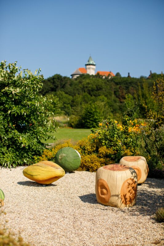 Záhrada prezentuje včelárstvo a spracovanie včelích produktov zaujímavou formou – prostredníctvom umelecky stvárnených edukatívnych prvkov. Jej charakter nadväzuje na okolitú krajinu. V záhrade máme väčšinu rastlín domáceho pôvodu, ovocné a jedlé druhy doplnené trvalkovou výsadbou, kvetmi a bylinkami tak, aby vytvorili celoročne farebnú oázu pod Smolenickým zámkom. Z bohatej zmesi pestrofarebných včelomilných rastlín u nás nájdete rôzne historické alebo pôvodné druhy ovocín, okrem iného dula, mišpuľa alebo oskoruša, či štepence nekvitnúcej jablone zo záhrady Juraja Fándlyho z neďalekého Naháča. V našej záhrade chceme zážitkovou formou predstaviť verejnosti dôležitosť drobnučkých opeľovačov pre náš svet. Objektami z rúk lokálnych umelcov a remeselníkov chceme inšpirovať k zamysleniu nad darmi prírody, ktoré často berieme ako samozrejmosť. Nájdete tu napríklad bludisko z tisícok kvetov „Raj Srdca“, včelí tanec, gigantické peľové zrná, hmyzí hotel, včelie obydlia, dutý strom, bylinkový záhon, a mnohé ďalšie.